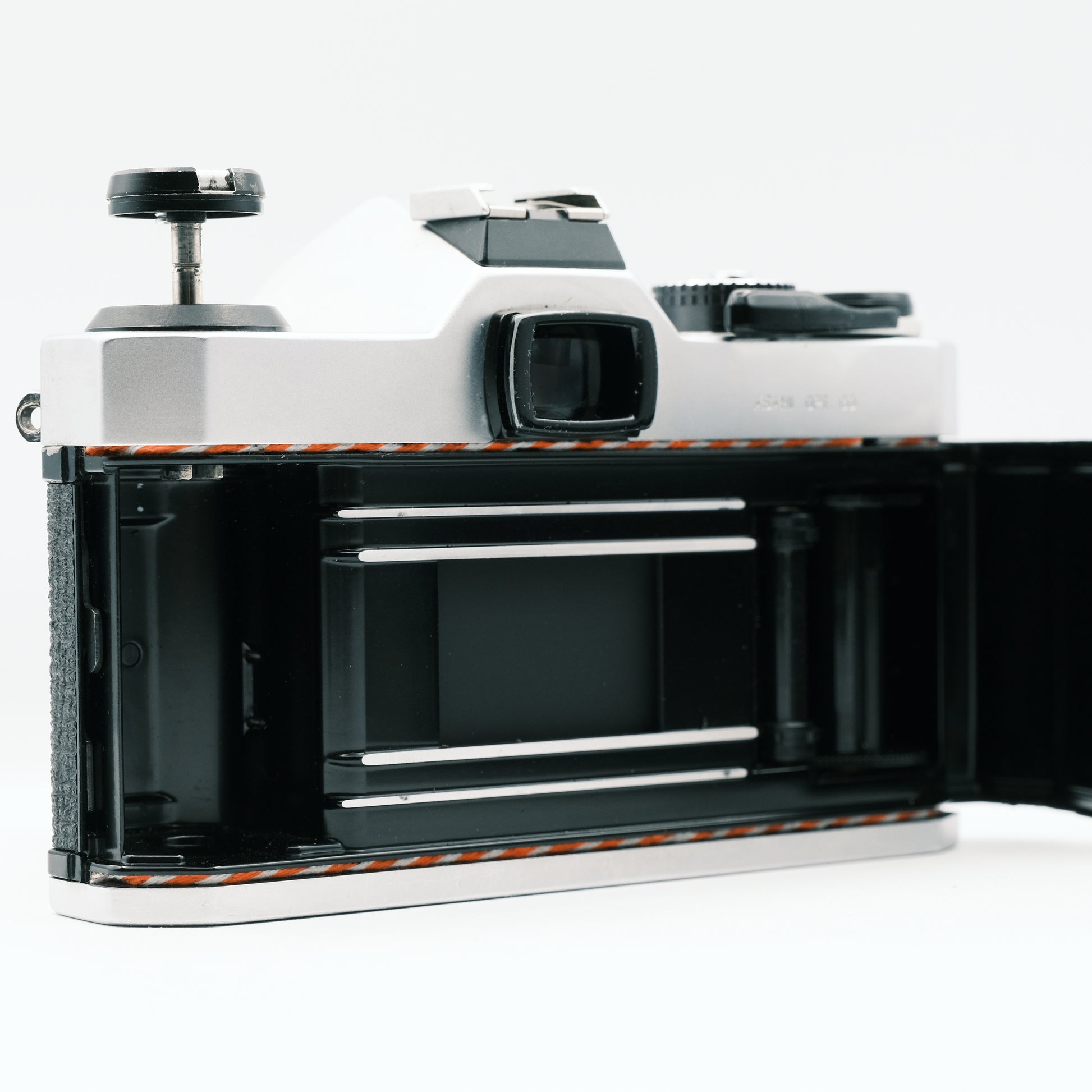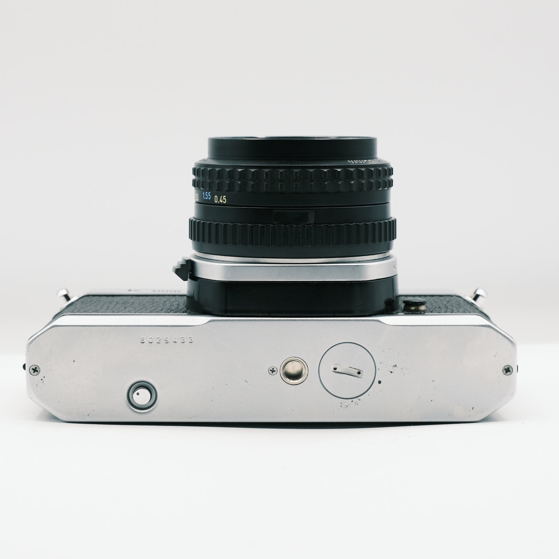 Otturatore meccanico in tela a scorrimento orizzontale, velocità di scatto: da 1 sec a 1/1000 di sec più la posa B, sincroflash a 1/60 di sec, attacco baionetta K